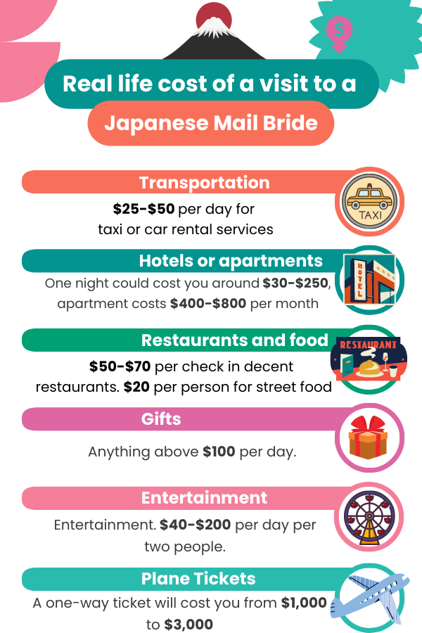- Additional expenses (in case you decide to bring your Japanese bride to the US): from $1,500